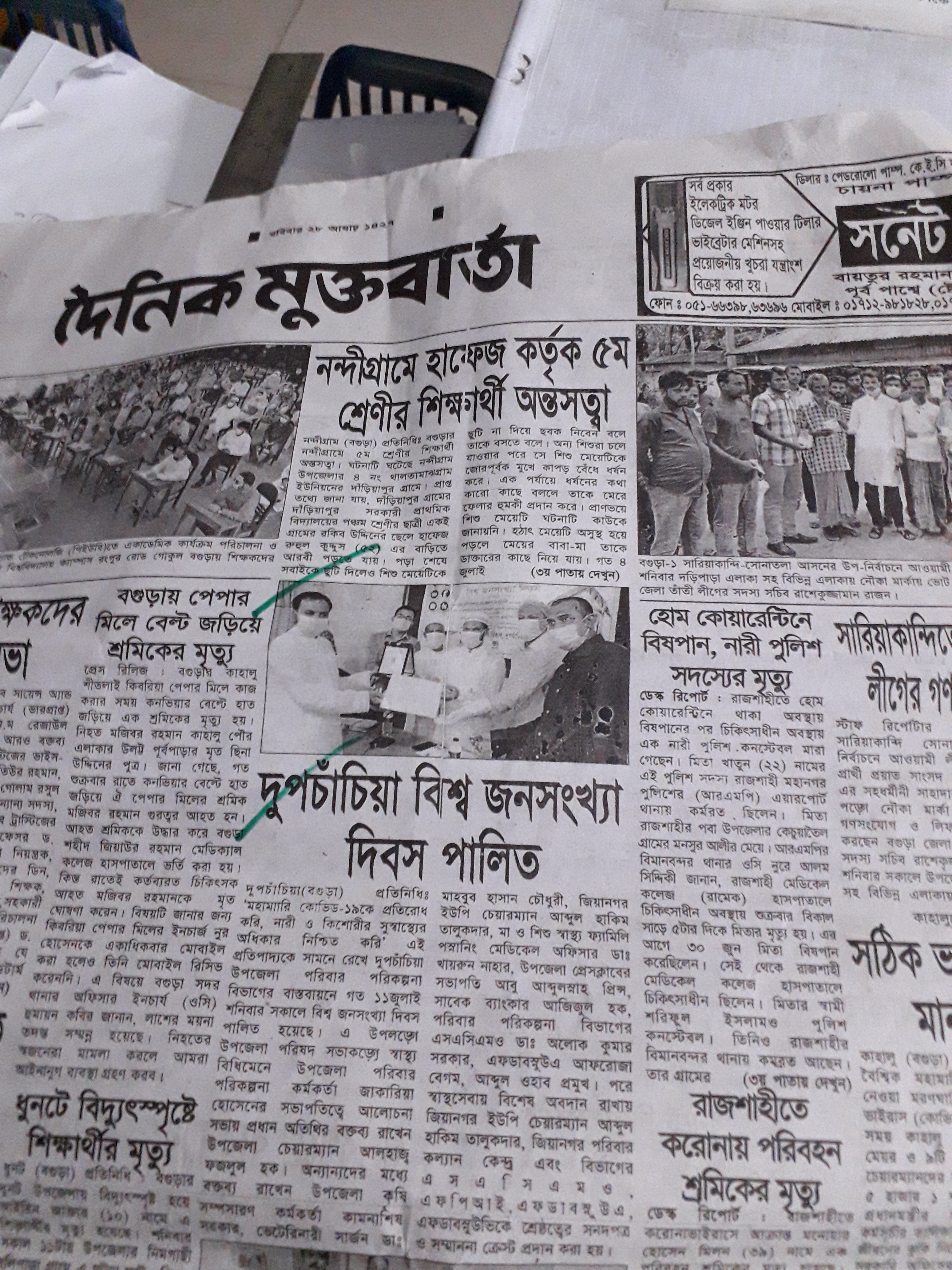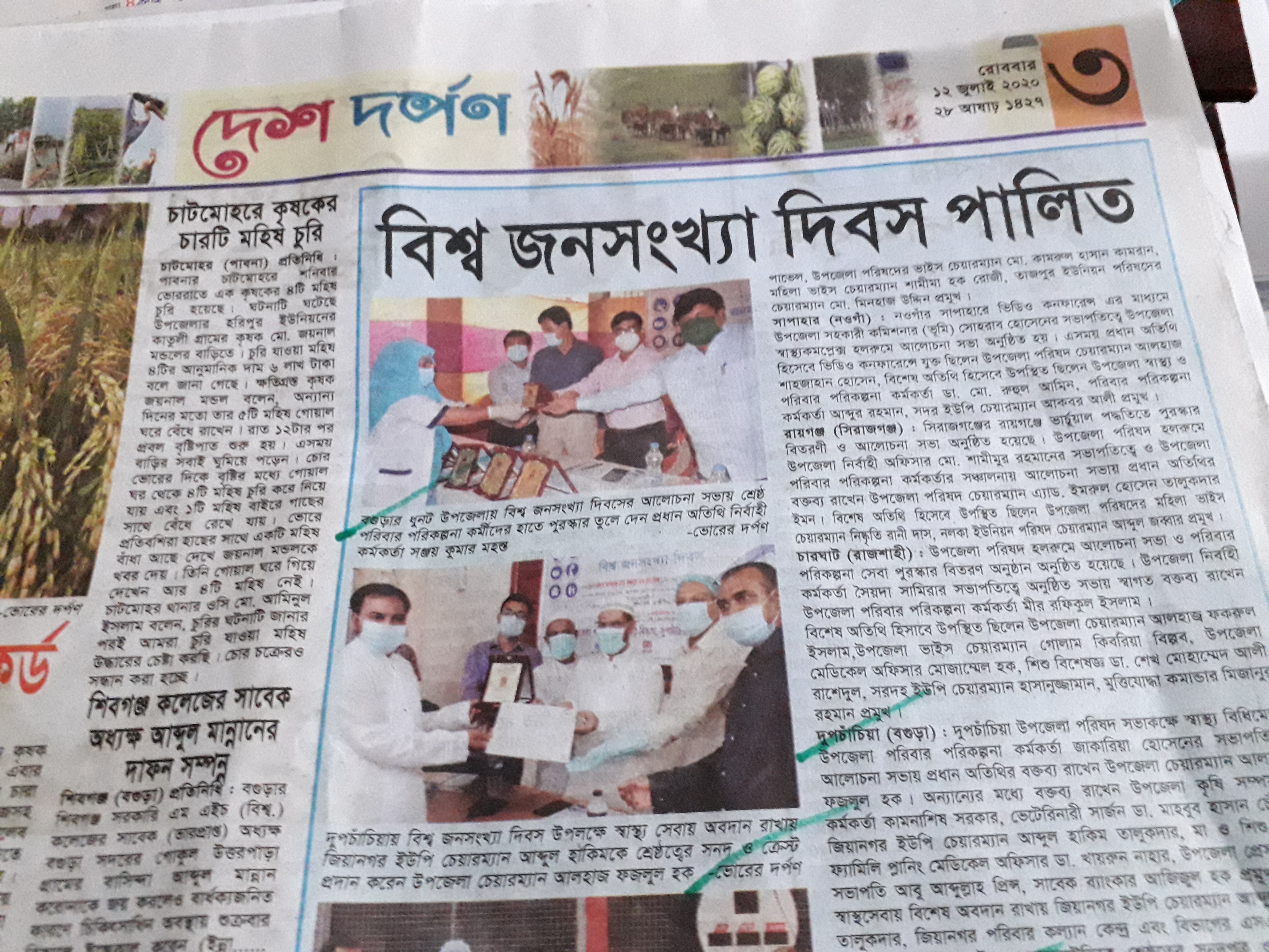 দুপচাচিয়া ,বগুড়া তে ১১ জুলাই বিশ্ব জন সংখ্যা দিবস- ২০২০ পালনের সংবাদ বিভিন্ন সংবাদ মাধ্যমে প্রকাশিত হয় (১২/০৭/২০২০)